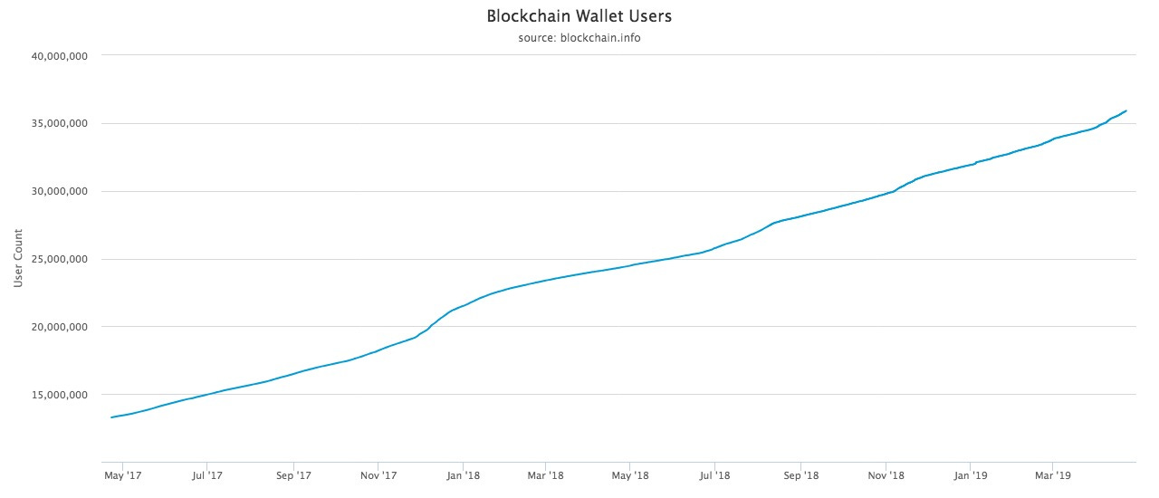 The total number of Bitcoin blockchain wallets has increased over 2.5x in the last two years.