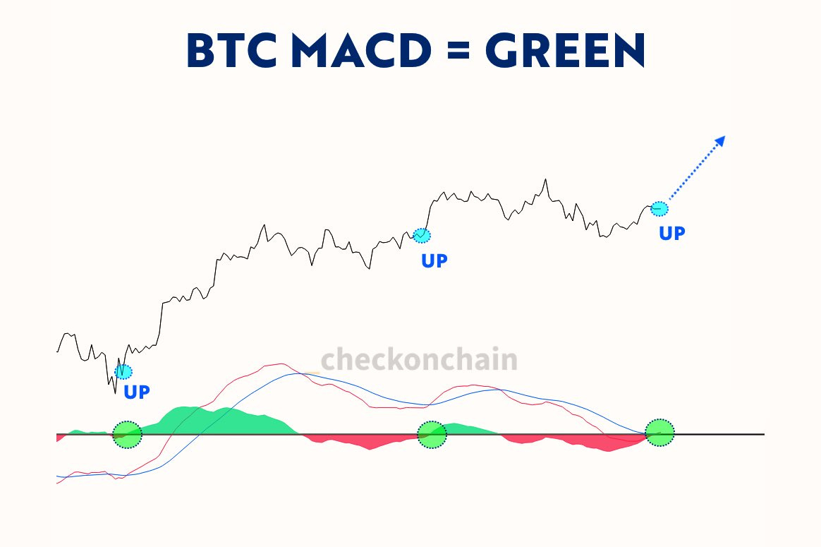 The Bitcoin Moving Average Convergence Divergence, known as the MACD, is a momentum measurement that historically does a good job of showing when sentiment is flipping bullish. As the market becomes more excited, capital flows and bitcoin goes higher.