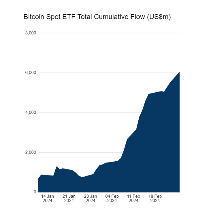 The bitcoin ETFs are getting most of the attention because the capital inflows are quantifiable. They have exceeded all expectations. It is fun to watch Wall Street push the price of bitcoin up in order to get bitcoin holders to sell their coins.