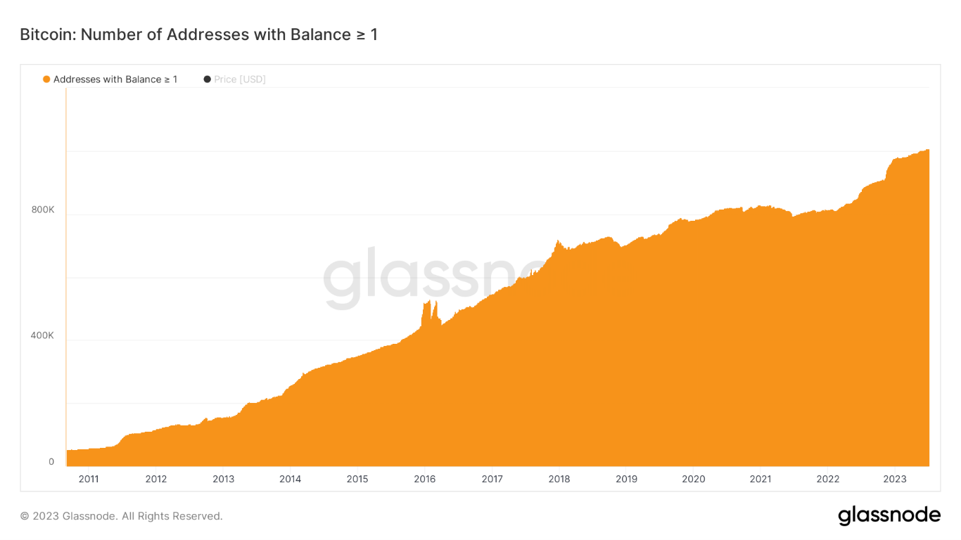 This quarter the number of Bitcoin addresses with over 1 Bitcoin breached 1 million for the first time.