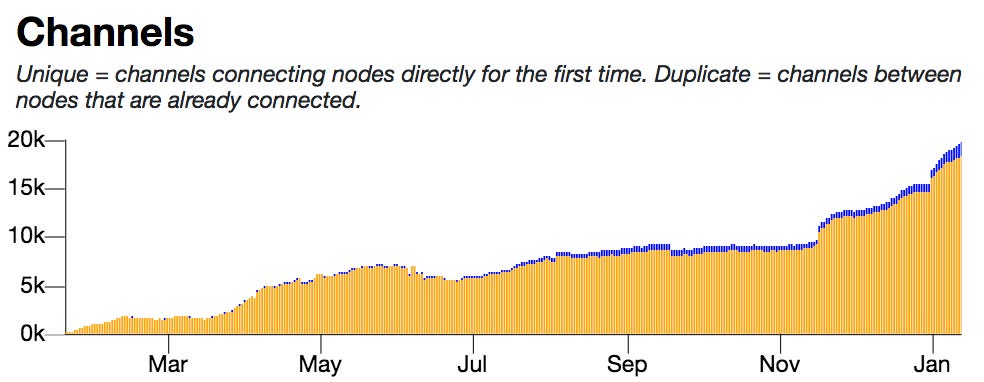 Luckily, we have teams like Maker and Lightning Labs that sidestepped the ICO mania and have been impressively executing. For example, Maker recently launched a collateralized debt product that already has almost 2% of ETH locked up and Lightning Labs has been busy pushing Lightning Network adoption at a breakneck speed.