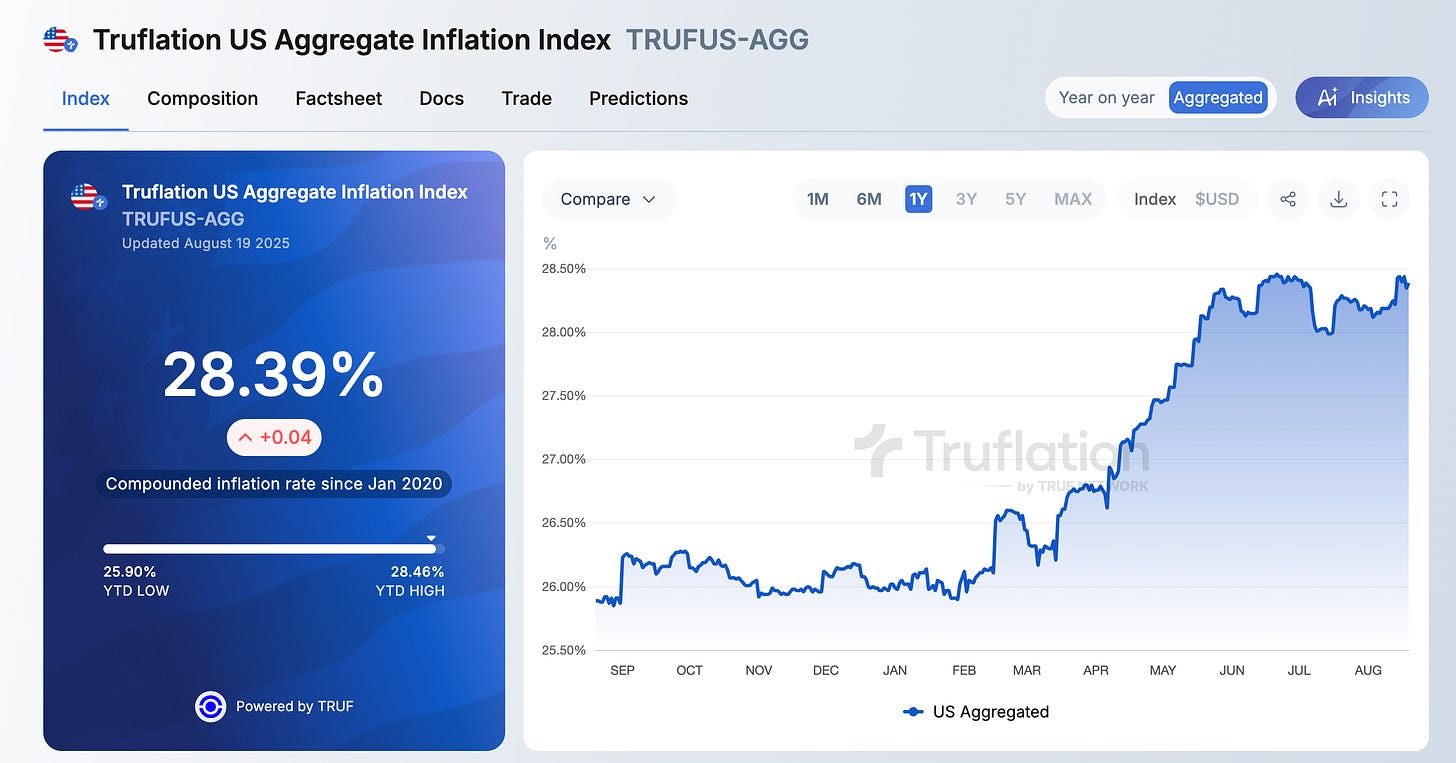 This level of government spending has created one of the fastest debasements of the US dollar in recent memory. Truflation tells us the dollar has lost 28% of its purchasing power since 2020. That is just insane over a half-decade.