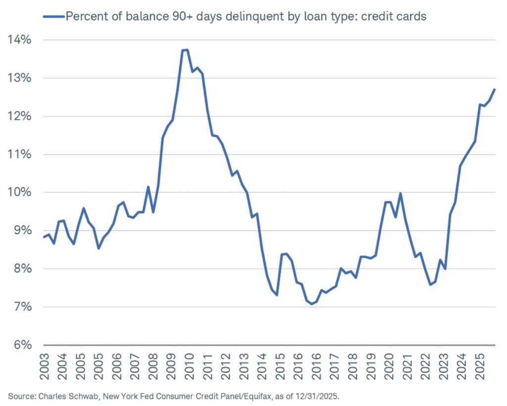 For example, Barchart explains “12.7% of credit card loans are now in serious delinquency (90+ days), the 2nd highest in history. The only other time the percentage was higher was the aftermath of the Global Financial Crisis.”