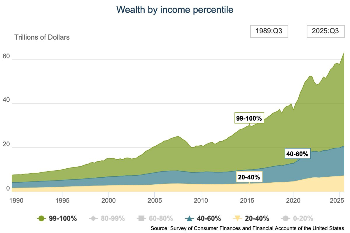 This wealth inequality is most likely only going to get worse over time if we continue on the path we are currently going down. The wealthy will own financial assets, AI agents, and robots, while the bottom half of the K-shaped economy will be holding cash and struggling to get a job.