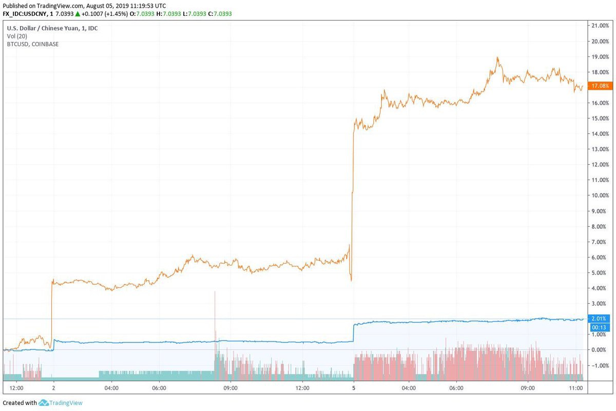 There appears to be a visual correlation between USDCNY and Bitcoin.