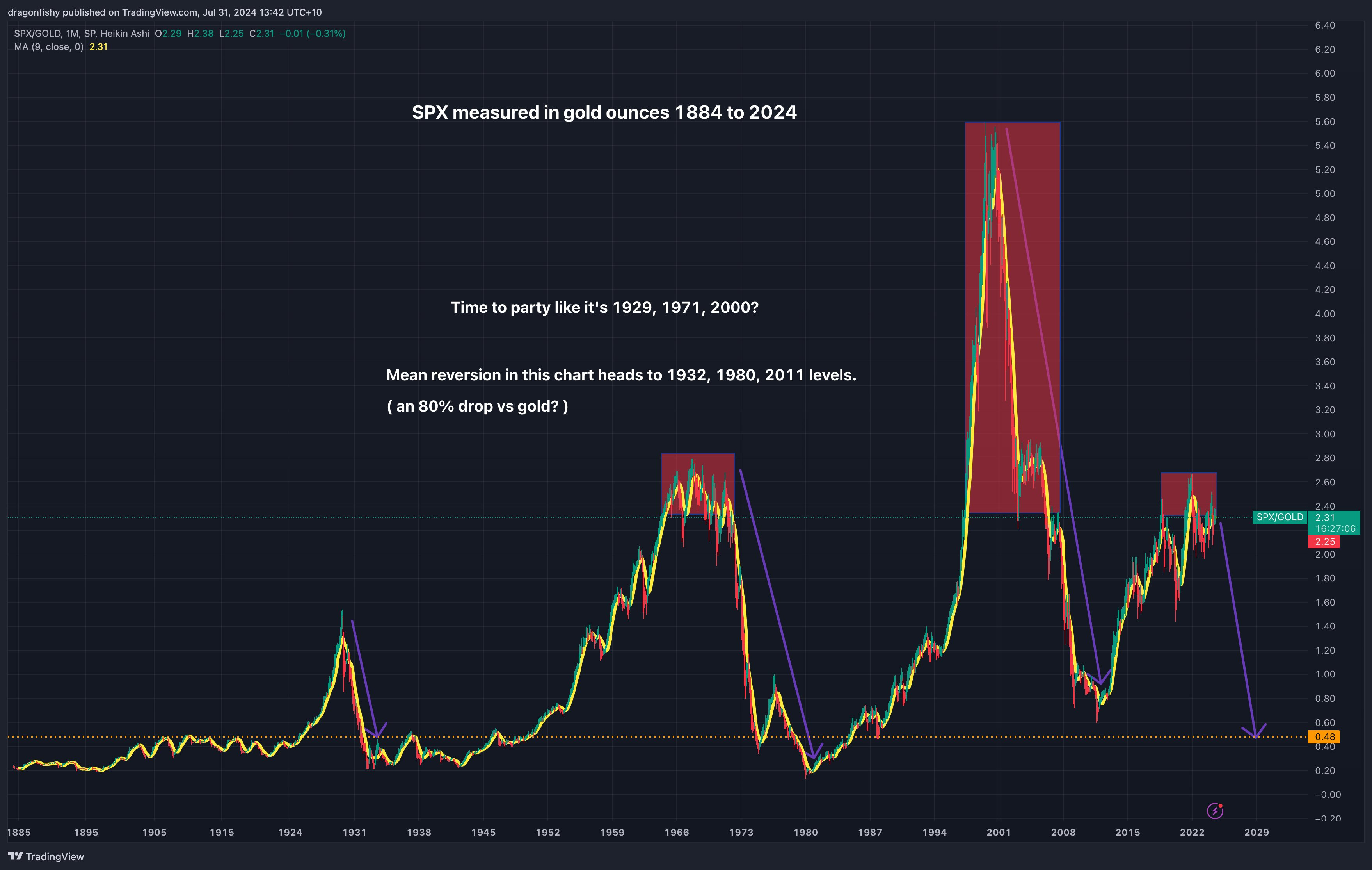 For example, the S&P 500 is essentially flat since the early 1970s when it is priced in gold ounces, rather than US dollars. That signals majority of the stock market growth is likely from currency debasement instead of intrinsic value growth.