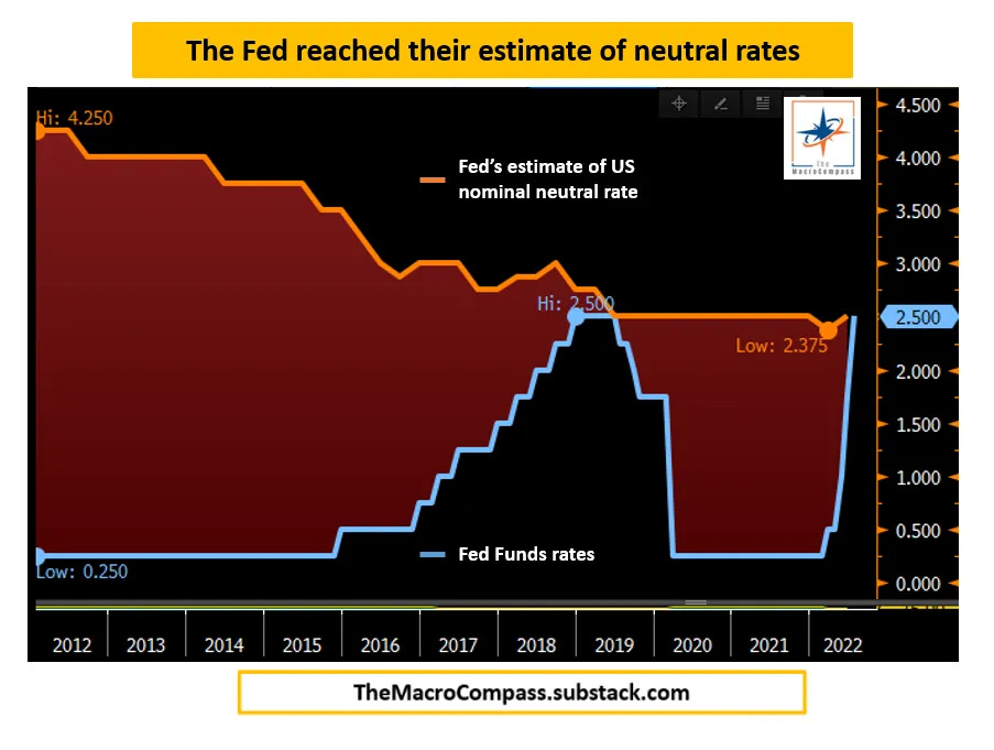 But that also means any hikes from here are going to put the Fed in an actively restrictive territory.