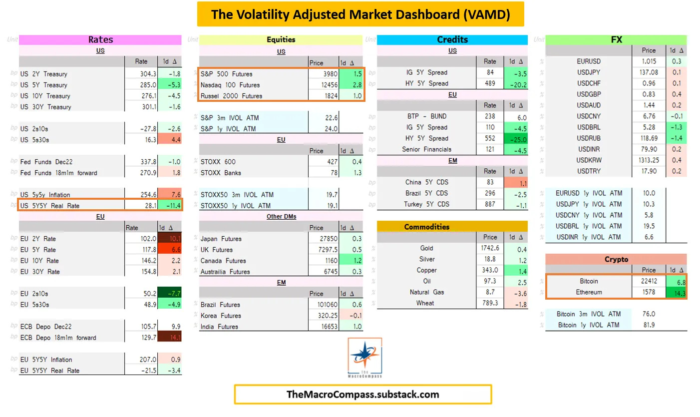 In short, the Crazy Market Rally was spurred by Powell ditching its forward guidance and kickstarting ‘‘full data dependency’’ season - given the bond market’s strong opinion on inflation going forward and no autopilot Fed tightening anymore on the horizon, investors went ahead and repriced all other asset classes accordingly.