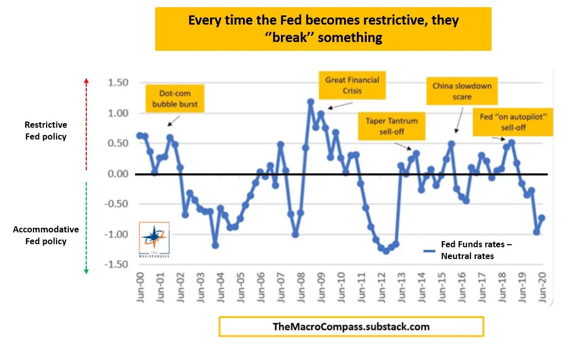 And the bond market knows that every time the Fed became restrictive in the past, they ended up breaking something.