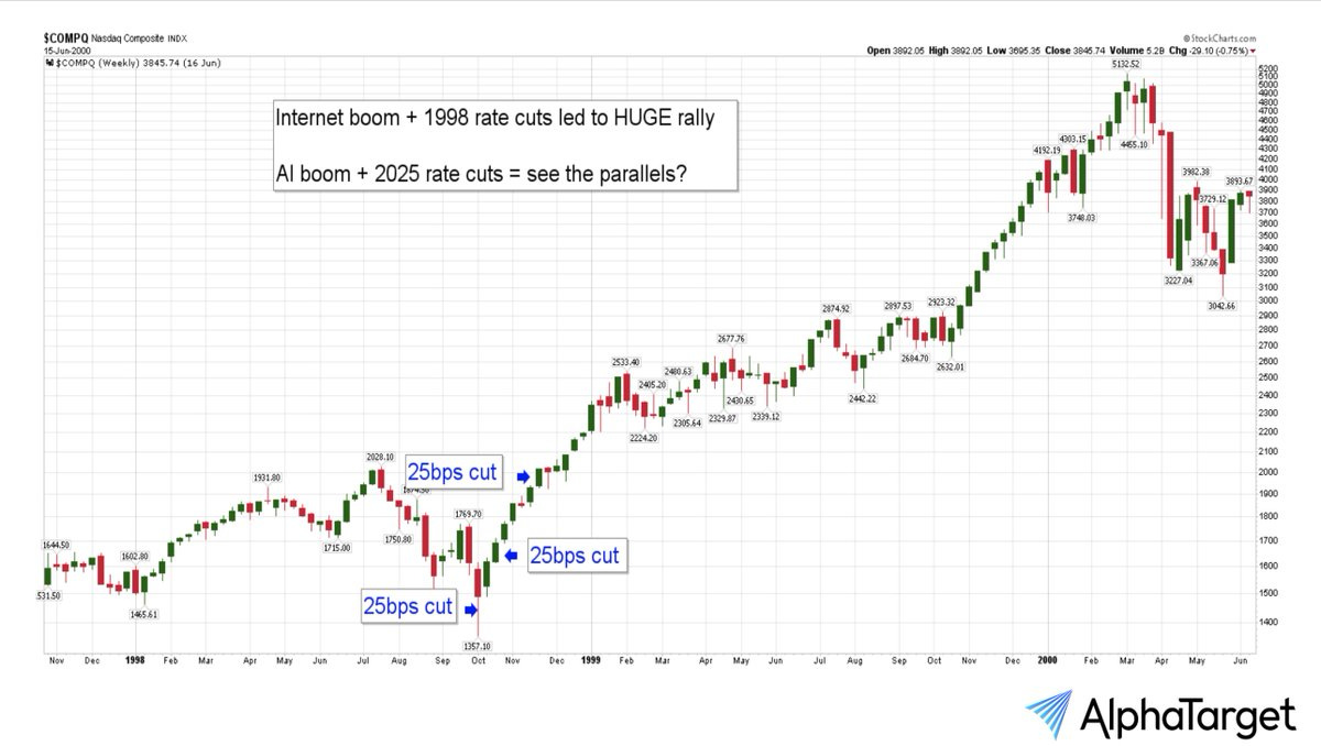 Lastly, remember the 25 basis point rate cut in 1998 helped kick-off an insane rally in tech stocks during the Dot Com Boom.