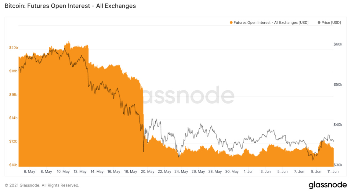 Futures Open Interest has started to creep back up, briefly reaching over $12.2B on Wednesday during the rally off 31K. As OI comes back, futures data will become more influential in trying to asses the market, with metrics such as funding rates.