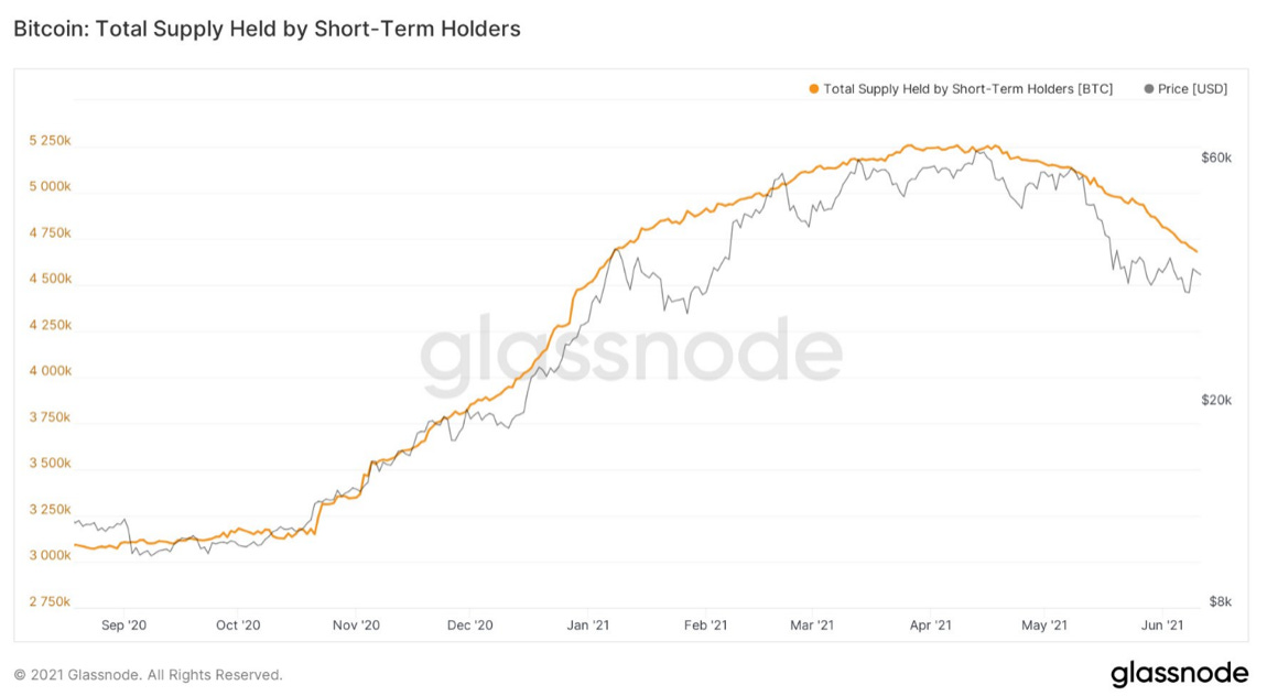 The rate of which short-term holders have been selling has decreased, while the rate that long-term holders are buying has increased