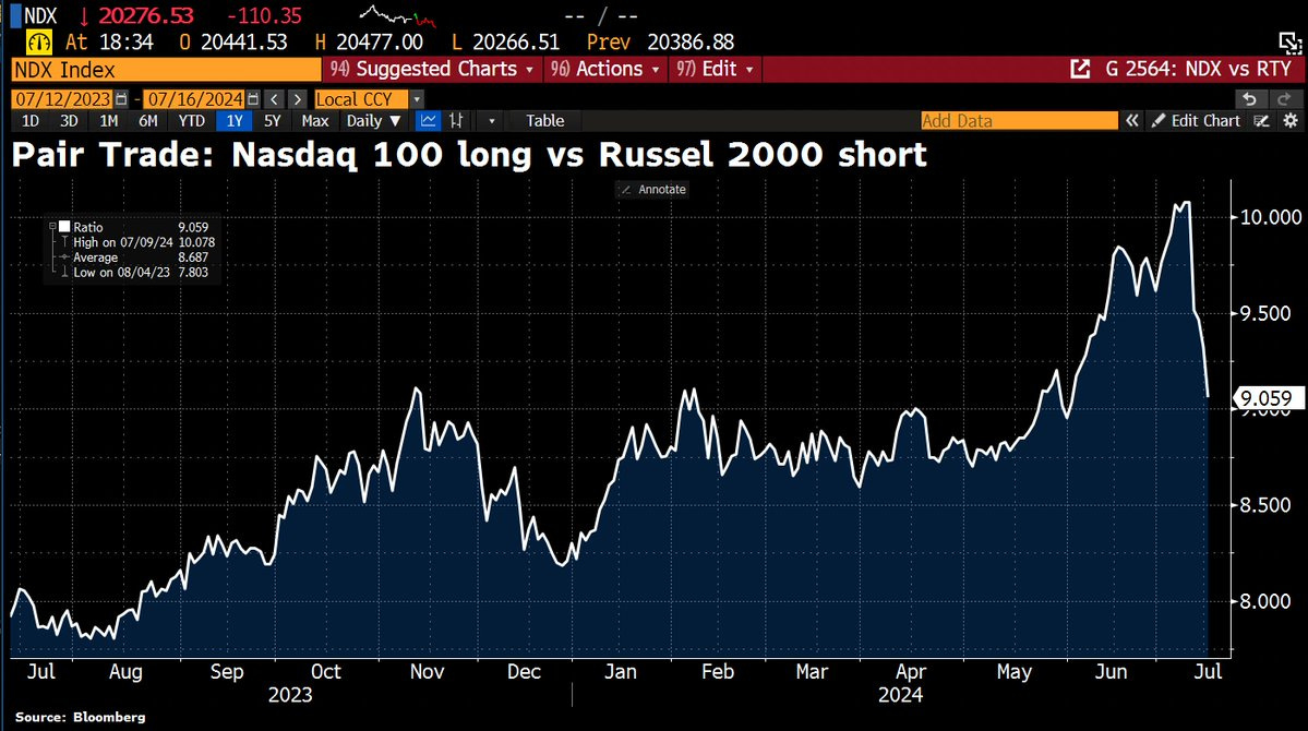 This can also be illustrated by those going long Russell and short Nasdaq 100, according to Holger Zschaepitz.