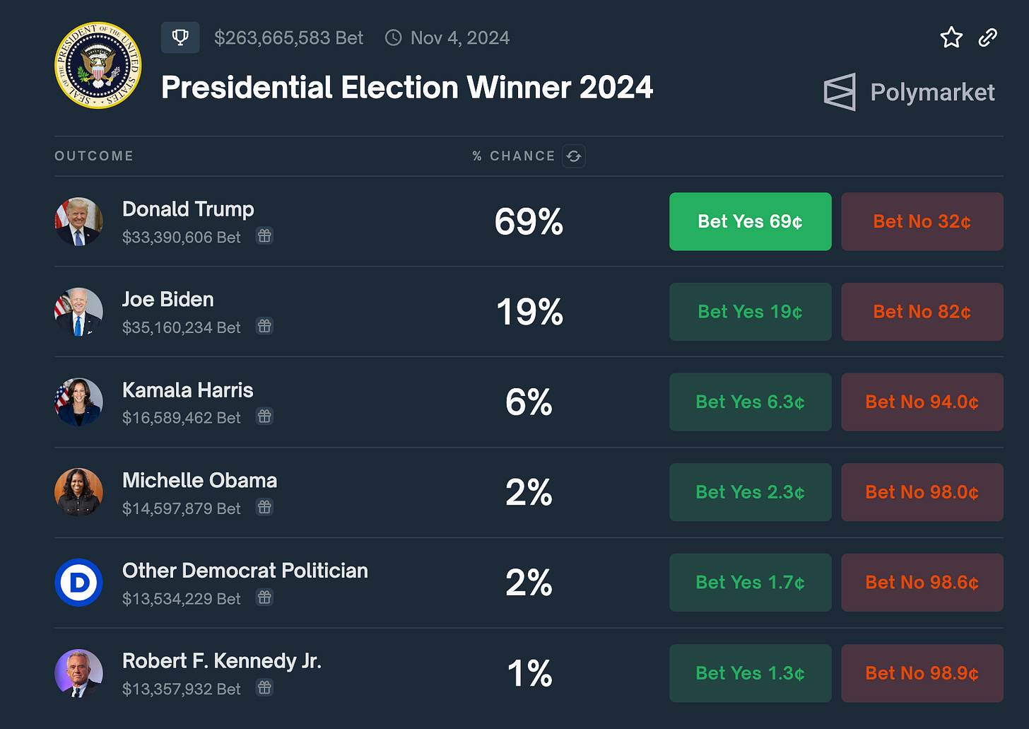 The market is starting to price in a President Trump victory in November. To understand the perceived “Trump Trade,” we must first remember that Trump’s odds of winning the election has now reached at least 69%.