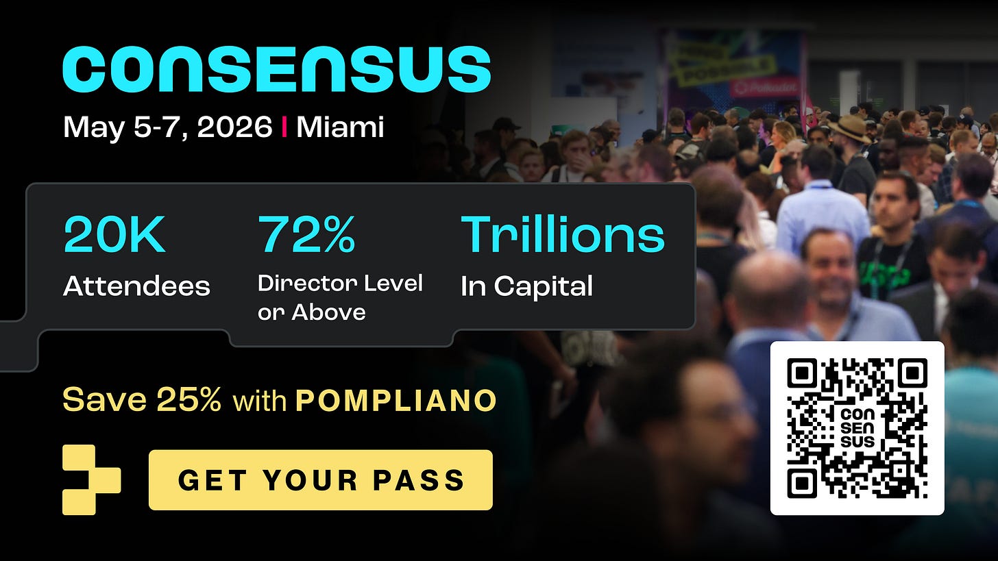 Consensus Miami - May 5-7 • Join 20,000 decision-makers for the convergence of crypto, capital & culture. Save 25% with POMPLIANO.