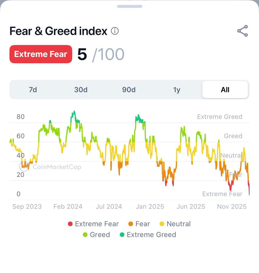 Raoul Pal pointed out the fear and greed index was sitting at 5 out of 100 yesterday. I don’t think I have ever seen the metric come in that low.
